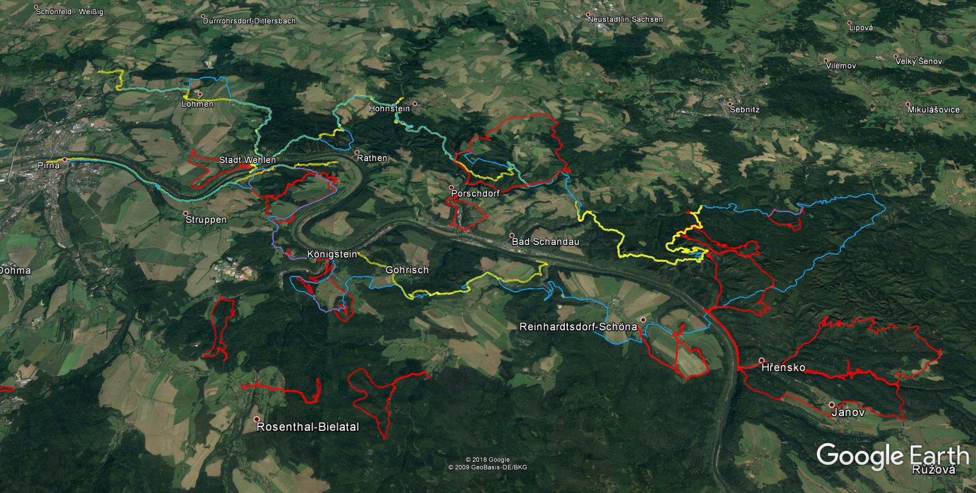 Ein neues Jahr hat begonnen. Das bedeutet auch, neuer Herausforderungen! Für uns nun die Gelegenheit, Angefangenes zu vollenden. Ich meine damit, die restlichen Etappen des Malerweges zu bezwingen. Wir liegen ja schon ganz gut im Rennen (siehe auch unsere Karte). Blau ist der gesamte Malerweg. Rot und Gelb haben wir schon bewandert. Zwei größere Abschnitte stehen noch bevor.